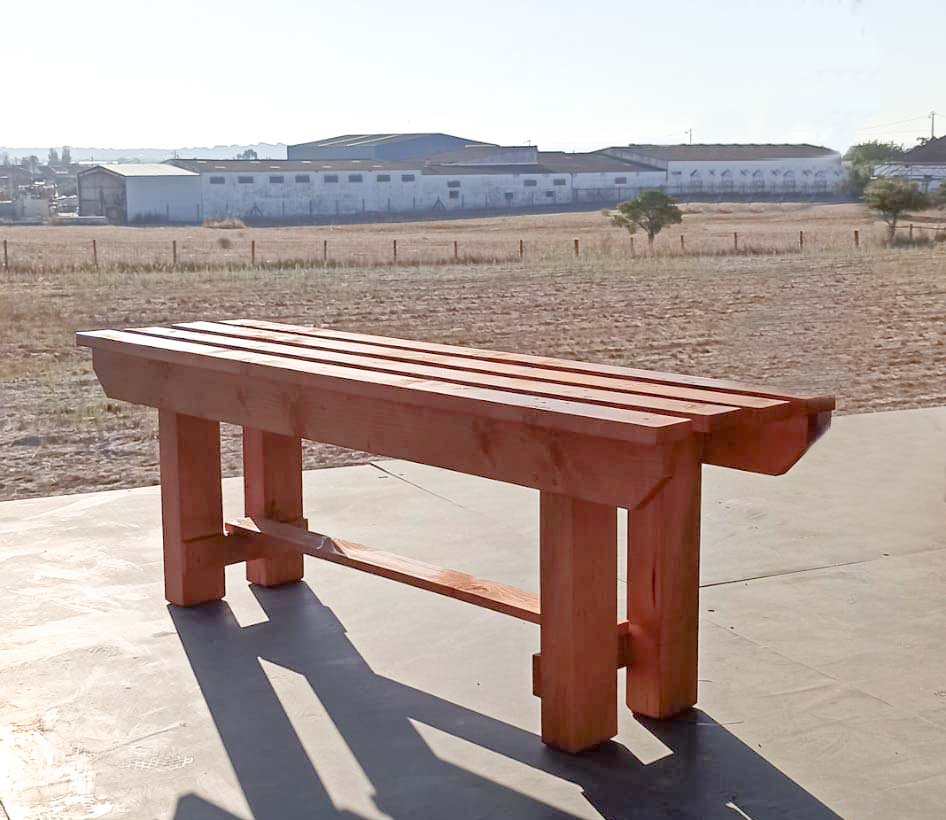 Produção de bancos de madeira. Estes podem ser utilizados em praias, jardins, ruas ou, ainda, para uso particular.